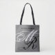 Eine stylische graue Tasche mit Ihrem Namen und Initialen, die im Stil eines Schriftartes mit Monogramm ist