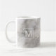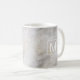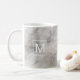 Moderne und trendige graue Marmorkaffeemaschine mit beiderseits fett weißer Tasse.