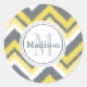 Mit Monogramm-Graugelb-Kat-Zickzack Muster Runder Aufkleber