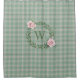 Mit Monogramm, grüner und rosa Karierter Peony Duschvorhang. Entworfen mit rosafarbenen Motiven auf grünem kariertem Muster.
