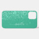 Mit Monogramm Handy Case Green Script Name in aquamarinem und aquamarinem Glitzer, elegant mit dem Vornamen Ihres Drehbuchs geschmückt.