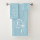 Mit Monogramm - hellblaues Handtuchhandtuch Set Jetzt einfach mit den Buchstaben Ihrer Wahl personalisieren. Sie können Namen, Logo usw. hinzufügen. Design von Alma Wad . Hellblau wird oft mit dem Zeichen des Taurus assoziiert. Sie können dies bei der Auswahl Ihrer Farben berücksichtigen.