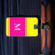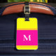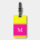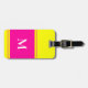 Gepäckanhänger mit einem fluoreszierenden Neongelb und leuchtend fuchsienrosa gestreiftem Design mit einem eigenen Monogramm. Ein elegantes und auffälliges Gepäckanhänger, mit dem Sie Ihre Tasche an einem stark befahrenen Flughafen leicht finden können.