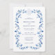 Etwas blaues elegantes Delft inspirierte Hand bemalt Aquarell blau-weiß Hochzeitseinladung.