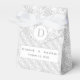 Das Design zeigt das Aussehen von weißer Spitze als Hintergrund zum Monogramm des Nachnamens des Paares. Die ersten Namen des Ehepaares und das Hochzeitstermin werden unten angezeigt. Der Text wird mit einer weißen Unterlage angezeigt. Sehr elegant. Konzipiert zur Koordination mit der Mit Monogramm Hochzeitssuite-Kollektion von White Lace.