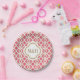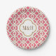 Elegante, stilvolle und wunderschöne französische Fliesen inspirierte Papier-Teller mit wiederholt rosa Fuchsia und goldenem Quatrefoliendesign. Unsere hochwertigen und luxuriösen Teller können mit den Initialen der Braut und des Bräutigams mit Monogramm werden und eignen sich hervorragend für eine feierliche Hochzeit mit marokkanischer, indischer, arabischer oder Aladdin, Paardusche, Brautparty, Jubiläumsfeier oder Verlobung. Design © Chrissy H. Studios, LLC. Alle Rechte vorbehalten