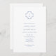 Chic mit jugendlicher Eleganz. Diese dustig blaue und weiße Hochzeitskarte verströmt einen frischen, modernen und jugendlichen Ton. Auf der Vorderseite der Karte befindet sich ein zeitgenössisches Set von Schriftart in dustig blauen und eleganten blumengeschmückten Paaren, die auf einem knusprigen, weißen Hintergrund stehen.