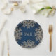 Eine schöne dunkelblaue und goldfarbene mit Monogramm Papiertafel mit einer exotischen indischen inspirierten Ziermedallion wie Muster mit einem Blumenmuster und Lotus Design. Diese elegante und wunderschöne Papiertafel im modernen indischen Stil eignet sich ideal für Hochzeiten, Verlobungen, Jubiläumsfeiern, Proben-Dinner, Brautparty- oder Paarduschen mit einem ethnisch indonesischen, ostasiatischen oder marokkanischen oder arabischen Thema. Es kann mit dem Monogramm und Initialen der Braut und Bräutigam personalisiert werden. Artwork © Chrissy H. Studios, LLC. Alle Rechte vorbehalten.