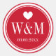 Bordeaux Gastgeschenk Hochzeit Aufkleber in Rot und Weiß, Monogramm. Niedliches Herz mit mit Monogramm Namen Initialen von Braut und Bräutigam plus Heiratsdatum. Personalisiert danke Ihnen Aufkleber oder Umschlag-Dichtungen / Siegel für die Speicherung der Datumskarten und lädt. Elegante Stiltypografie für die Initialen von Braut und Bräutigam. Chic initialisiert Design / extravaganter Druck. Anpassbare Hintergrundfarbe. Romantische Liebe Thema Design. Auch gut für Brautparty, Verlobung, Bachelorette oder Jubiläum Party.