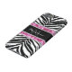 Hübscher schwarzer und rosa Schein Glitzerblick Hintergrund und Imitatschmuck (kein wirklicher Glitter oder Juwelen - so ist es sicher), mit Schwarzweiss-Musterdruck des wilden Tieres des Zebra und individueller Name oder Text und eine niedliche Modeaussage des entzückenden Chic.