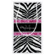 Hübscher schwarzer und rosa Schein Glitzerblick Hintergrund und Imitatschmuck (kein wirklicher Glitter oder Juwelen - so ist es sicher), mit Schwarzweiss-Musterdruck des wilden Tieres des Zebra und individueller Name oder Text und eine niedliche Modeaussage des entzückenden Chic.