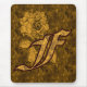 Monogramm Initial F in Goldsatin mit einem zarten, goldenen Pfirsichen-Blumenmousepad. Dieses Bild ist auf vielen Produkten in meiner Galerie verfügbar.