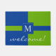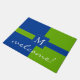 Eine moderne und Chicweise zu den willkommenen Gästen herein zu Ihrem Zuhause. Kelly, die grün sind und die hellen blauen Farben, die mit Ihrem mit Monogramm Anfangs- und dem Wort "Willkommen" personalisiert sind, sind auf dieser Matte der schönen, vorderen Tür. Für eine Designer-Touch innerhalb Ihrer Zuhause… Add koordinierenprodukte. Besichtigen Sie bitte meinen Speicher "die Hungarican Prinzessin" bei www.zazzle.com/hungaricanprincess*. Schauen Sie in meiner "blauen und grünen" Abteilungskategorie oder "in blauen und grünen Sammlung".