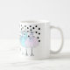 mit Monogramm Kaffee-Tasse. Blau, rosa und türkisfarbene Kleider auf Hängern. Polka Punkt Hintergrund Fügen Sie Ihren Namen oder Monogramm zu personalisieren.