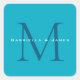 Mit Monogramm Kalligrafie Azure Blue Moderne Schli Quadratischer Aufkleber