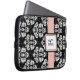 Dieser hübsche und elegante mit Monogramm rosa und schwarze Damastlaptop, Tablette und/oder Elektronikhülse, Kasten, Abdeckung und Tasche können mit Ihrem Monogramm oder Initiale auf dem Kontraststich-Bandentwurf personalisiert sein. Wählen Sie von 3 verschiedenen Größen. Entworfen durch Chrissy H. Studios, LLC. Alle Rechte vorbehalten.