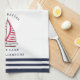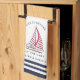 Personalisieren Sie dieses mit Monogramm nautische Design mit Ihrem Familiennamen oder anderen Texten, um ein einzigartiges, weißes, marineblau und rotes Küchentuch mit einer Segelbootillustrierung und das Leben ist besser am See Sprichwort zu schaffen. Es ist eine stilvolle Geschenkidee für Weihnachten-, Party- und andere Anlässe von Hausbesitzern.