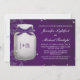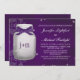 Ein herrliches Lila und Leuchtkäfer-Maurerglas der Pflaume hued verbindet Polterabendeinladung, die aussehen wie es glüht. Fügen Sie die Initialen und oder Monogramm der Braut und des Bräutigams dem Glas mit einem tiefpurpurnen und Weiß Druckbandblickentwurf hinzu. Eine subtile Vintage Damastantiken-Spitzegrenze beglückwünscht diesen rustikalen dennoch eleganten Entwurf mit den bezaubernden Leuchtkäfern, die vom Glas inner und äußer sind. Diese lädt sind schön für eine Nachtzeit, einen Barnyard, themed eine Dusche des Bauernhauses oder des Landes oder ein Verlobungs-Party ein. Grafik © Chrissy H. Studios, LLC. Alle Rechte vorbehalten.