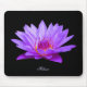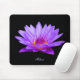 Mit Monogramm Lavendel-lila Single-Wasser-Lilien-Schwarzes Mousepad. Optionaler Name oder Anfangsmonogramm auf schwarzem Hintergrund. Grafikdesign durch Claudine Boerner.