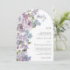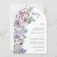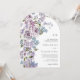 Erleben Sie einen zeitlosen ersten Eindruck mit dieser wunderschön gestalteten, bogenförmigen Hochzeitseinladung. Sie besticht durch ein raffiniertes Monogramm, das von handbemalten Aquarelllilaks in weichem Lavendel, lila und blau, ergänzt durch üppige Vegetation, gerahmt wird. Die einzigartige Bogenform verleiht einer modernen und dennoch eleganten Touch, während das Blumendesign Romantik und Eleganz hervorruft. Vollständig anpassbar, können Sie die Formulierung personalisieren, die Stile und Größen des Schriftartes anpassen und den Hintergrund an Ihr Hochzeitstil anpassen. Diese atemberaubende Einladung Set die Bühne für eine unvergessliche Feier voller Schönheit und Charme.