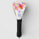 Hübsche, weiße Golfkopfabdeckung mit farbigen vierblättrigen Kleeblatten. Personalisieren Sie das kundenspezifische Monogramm mit einem Buchstaben, für sich selbst oder als großartige Geschenkidee für sie.