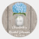 Mit Monogramm Mason Jar Blue Hydrangea Brautparty Runder Aufkleber