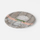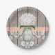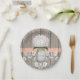 Hübsche rustikale Stil mit Monogramm Mason Glas Papier Platte mit einem Pfirsich Hydrangea Blume und einem Holzzaun und antiken Damast Muster Spitzen Hintergrund und gesteppt gewaschenen Korallenband. Diese Hochzeitsdusche oder Brautparty- oder Paardusche, Verlobung- oder Jubiläumsplatte personalisiert mit den Initialen und Monogramm des glücklichen Paares oder Braut und Bräutigam auf dem Maurerkrug ist perfekt für ein Land, Bauernhaus, Gartenhaus Party oder barnyard Stil besondere Anlass oder Feier. Designed by Chrissy H. Studios, LLC. Alle Rechte vorbehalten.