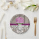 Hübsche rustikale Art mit Monogramm Mason Glas Papierplatte mit einer rötlichen lila Hydrangea-Blume und einem Holzzaun und antiken Damastmuster Spitzen-Hintergrund und geheftete Pflaumenfarbband. Diese Hochzeitsdusche oder Brautparty- oder Paardusche, Verlobung- oder Jubiläumsplatte personalisiert mit den Initialen und Monogramm des glücklichen Paares oder Braut und Bräutigam auf dem Maurerkrug ist perfekt für ein Land, Bauernhaus, Gartenhaus Party oder barnyard Stil besondere Anlass oder Feier. Designed by Chrissy H. Studios, LLC. Alle Rechte vorbehalten.