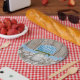 Mit Monogramm Maurer-Glasblaue Hydrangea-Hochzeit Pappteller