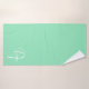 Ein Badetuch-Set in Meeresgrün (#93E9BE), personalisiert mit Monogramm. Das Badezimmer ist für diejenigen gedacht, die einen Retro-Stil der 50er Jahre genießen. Dieses hellgrüne, an die Natur erinnernde Grün wird oft mit Glück, Frische und Erneuerung in Verbindung gebracht, was es zu einer idealen Wahl für ein Geschenk macht. Einfache Anpassung jetzt mit den Buchstaben Ihrer Wahl, entworfen von Alma Wad.