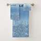 Metallische gefrorene Eisblauer Dripping Glitzer Imitate bedrucken auf der Oberseite und unten, mit einem angepassten Monogramm zentriert auf jedem Stück. Badehandtuch, Handtuch und Waschlappen, die als Set erhältlich sind oder auch einzeln verkauft werden. Wenn Sie das Monogramm weglassen möchten, löschen Sie einfach den Inhalt der Textfelder und verließ sie leer.
