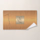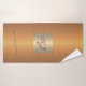 Trendy Luxus exklusiv aussehendes mit Monogramm Badetuch-Set mit einem Imitat Goldplatz über einem stilvollen orangefarbenen Terracotta Metall Hintergrund. + Personalisieren Sie es mit Ihrem schwarzen Skriptsignennamen oder Familiennamen und Monogrammnamen Initialen.