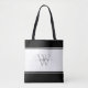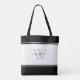 Moderne, minimalistische Drehschrift personalisiert trendige Monogramm Tote-Tasche. Das elegante Schwarz-Weiß-Design passt sich farblich dem Liniendesign an, gleicht es aber stilvoll aus und schafft so eine Drehung zum minimalistischen Look.