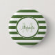 Eine moderne waldgrüne und weiße Streifen breiten Pinback-Taste. Personalisieren Sie dieses schlanke Muster, indem Sie Ihren Namen und den mit Monogramm Anfangsbuchstaben hinzufügen. Dieses elegante Monogramm-Design ist Teil der Treetop Stripes Personal Essentials Summer Color Collection.