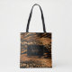 Moderne Tasche aus tierischem Druck in Pinselstrichen mit Kupfer, Gold, Glitzer, Schwarz und mit dem Monogramm, Vorname und Initial des Skriptes.