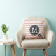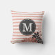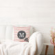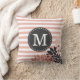 Ein schicker und trendiger Streifen mit Blume Blütengrafik und Monogramm Kissen in einem gürlich blassrosa und weiß. Ein kontrastierender, dunkelgrauer Labelrahmen mit einer anpassbaren Monogramm-Vorlage wird vorne und in der Mitte in einem fett formatierten Serif-Schriftart dargestellt. Das Design hat einen Vintagen französischen Gartenstil mit einer persönlichen Touch, die sicher ein Hit mit Girly Girls sein wird, die klassische Blumengrafiken mögen.