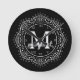Mit Monogramm Name Boho Mandala Black Silver Runde Wanduhr