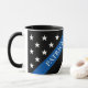 Diese dünne blaue Tasse mit schwarz-weiß US Flagge und einer dünnen blauen Linie mit Ihrem mit Monogramm Namen für Sie personalisieren. Perfektes Geschenk für Strafverfolgungsbeamte. Entworfen von dem weltbekannten Künstler ©Tim Coffey.
