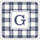 Mit Monogramm Navy Blue and White Kariert Pattern Quadratischer Aufkleber