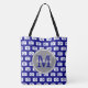 Navy blaue und weiße Kamerabildmuster mit grauem, individuellem Monogramm und personalisiertem Namen.