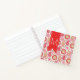 Hübsches Drahtheft in roter, rosa, grüner und weißer Paisleystruktur. Die Grafik eines roten Farbbands, das von der Vorderseite herabläuft, hat ein Monogramm aus weißen Singles. Personalisieren Sie den Brief, um Ihre Bedürfnisse Anzug.