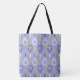 Maßgeschneiderte Mono Periwinkle und weiße Tennisschläger mit gelben Tennisbällen auf pastellblauem Hintergrund. Niedliches Muster für Tennisspieler und Fans. Tragetaschen mit Tennisplätzen. Gut als Geschenk für Tennisspieler