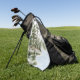 Das Mit Monogramm Grüne Pinienwald und das Golf Handtuch am See. Mit einer Aquarellzeichnung aus Holz. Personalisieren Sie es und fügen Sie Ihrem Spiel eine Touch von Naturcharme hinzu. Geeignet als Geschenk für Naturliebhaber.