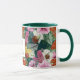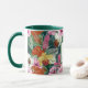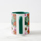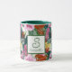 Stilvoll mit unserem Retro-Regenwald inspirierte mit Monogramm Tasse mit Vintag inspiriert rosa Morgenblüten, Orchideen, Hibiskus und Bromeliaden. Entworfen von Jo Story of Sketchbook Designs, ist es ein wunderbares Geschenk für tropische Blumenfreunde. Fügen Sie Ihrem Morgen eine Touch eleganten Peitschens hinzu!