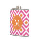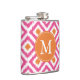 Mit Monogramm rosa Mandarine Diamonds Ikat Pattern Flachmann