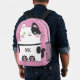 Niedlicher Kids-Rucksack in Rosa mit einer schwarz-weißen Katze mit niedlichen kleinen Pfoten und einem krummen Schwanz und den Initialen Ihrer Tochter in einer eigenartigen Hand, die Schriftart schreibt. Schicken Sie Ihre Tochter mit diesem süße Tier-Rucksack mit einer Schwarz-Weiß-Katze mit rot-violetten Wangen und grünen Augen und hübschen kleinen Pfoten zurück in die Schule. Katz Rucksack in Rosa für ein kleines Mädchen, das Lieben Kätzchen personalisiert mit ihren Initialen.
