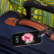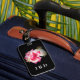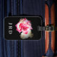 Das Design zeigt das realistische Bild einer eleganten rosa Rose in voller Blüte, die auf schwarzem Hintergrund dargestellt ist. Die von Ihnen gelieferten Initialen werden unten in einem weiß gedruckten Schriftart angezeigt. Klar und einfach zu lesen, dieses Design wird Ihnen sicher helfen, Ihr Gepäck zu identifizieren!
