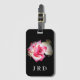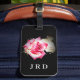 Mit Monogramm Rosa Rose auf der schwarzen Gepäckma Gepäckanhänger