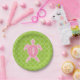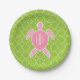 Mit Monogramm rosa Seeschildkröte-Grün Quatrefoil Pappteller