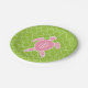 Ein Geschenk, das eine Illustration einer rosa Meeresschildkröte kennzeichnet. Personifizieren Sie mit Ihrem Monogramm auf der Muschel der Schildkröte. Hintergrund ist Limones grünes quatrefoil Muster.